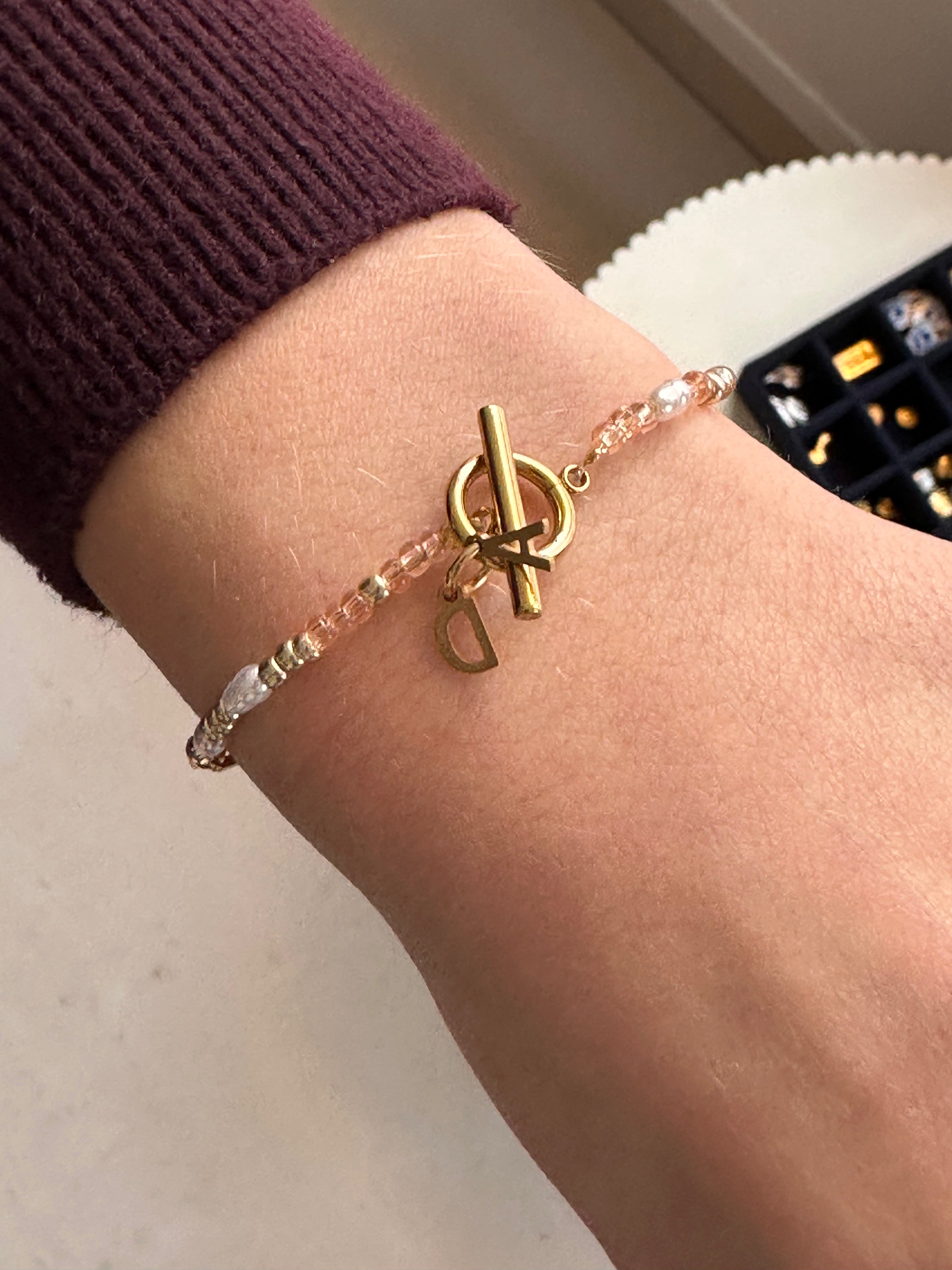 Perlenarmband mit Initial und Verschluss