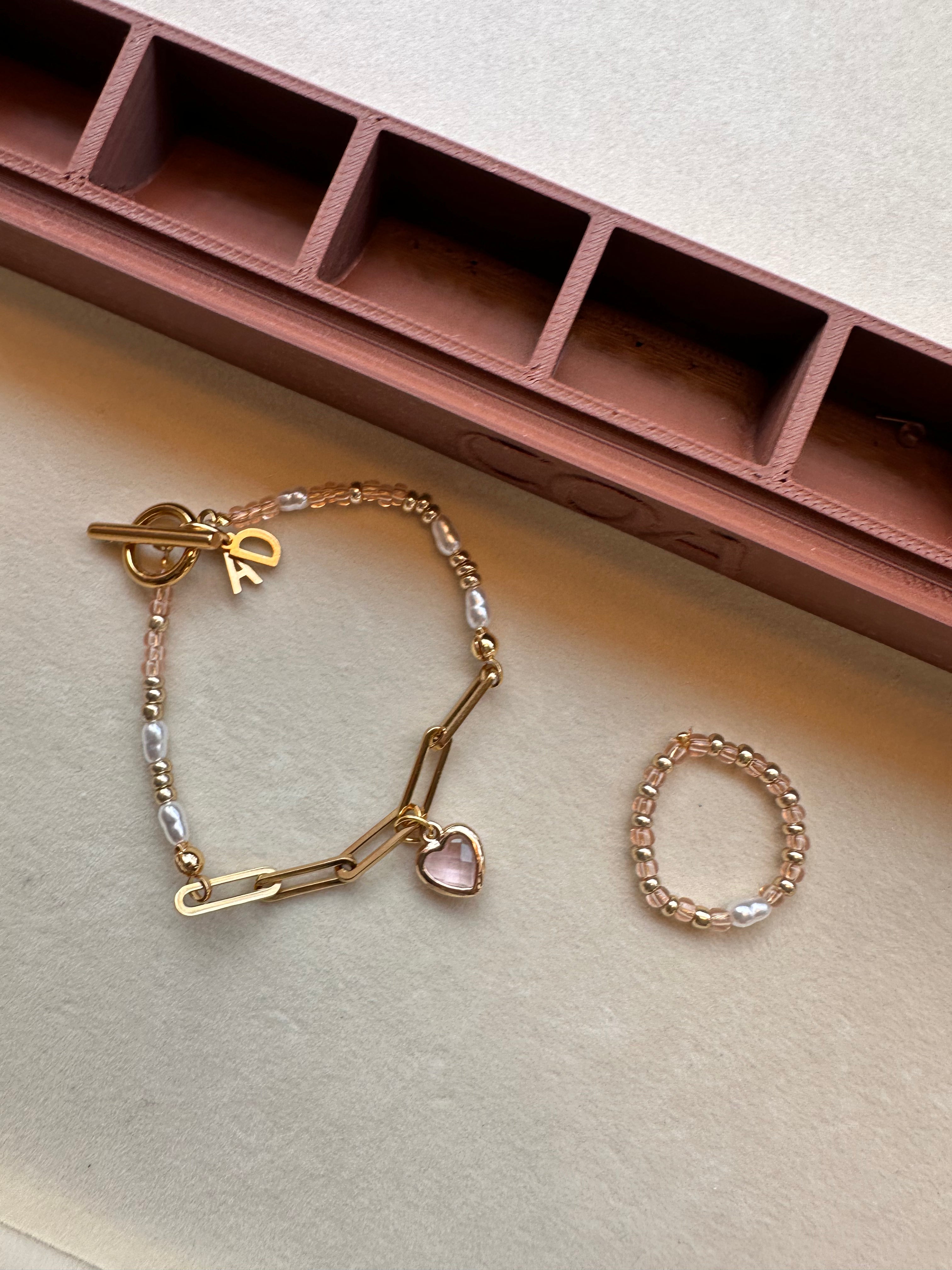 Perlenarmband mit Herz-Charm und Perlenring