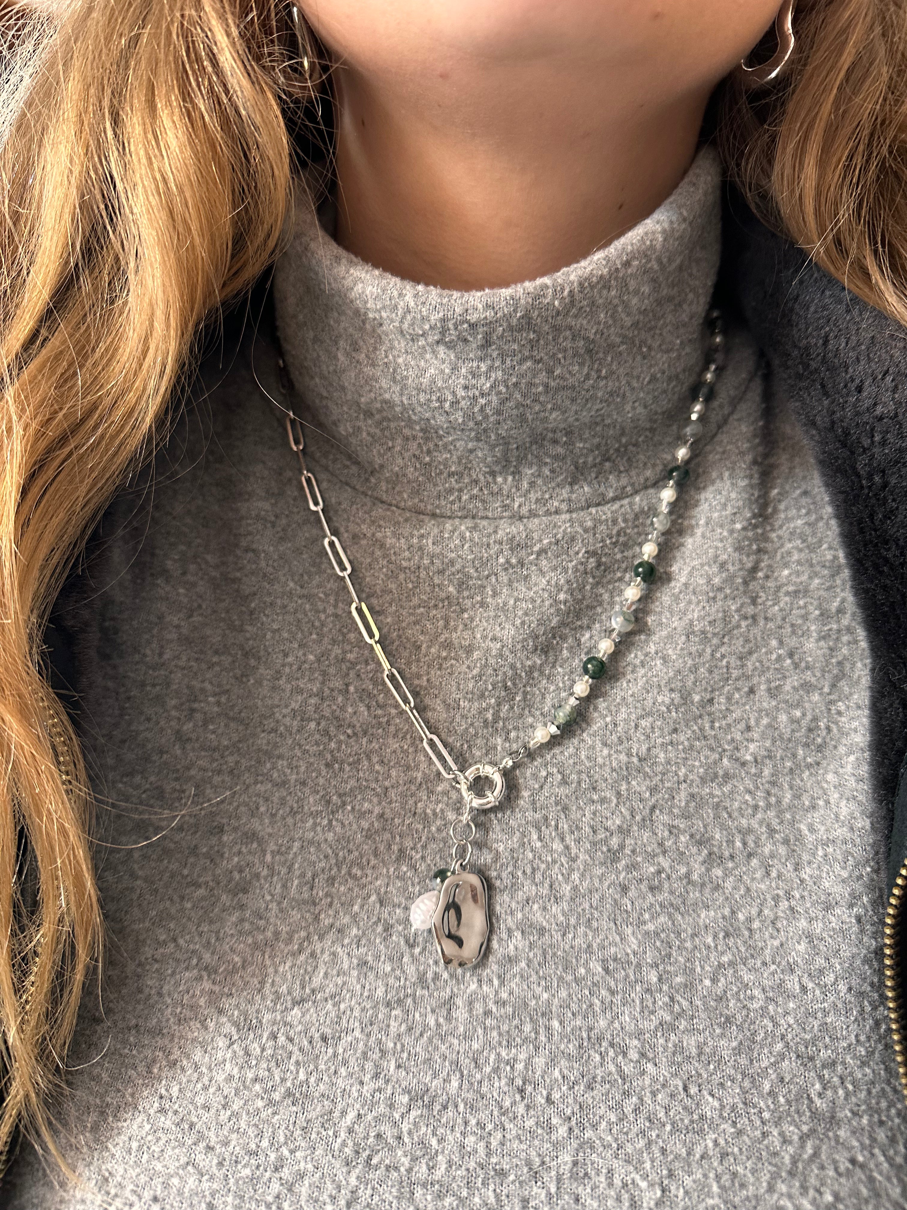 Perlen- und Gliederkette mit silbernem Charm